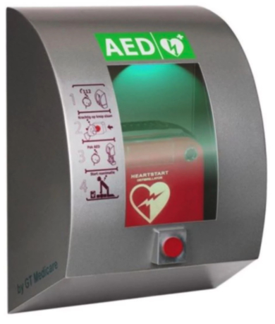 Dette grå SixCase utendørsskapet er laget av robust rustfritt stål og er designet for å gi optimal beskyttelse for hjertestarteren din. Du kan enkelt åpne skapet ved å trykke på den røde nødknappen.